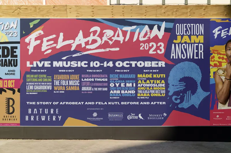 But our collaboration didn't stop at brewing exceptional beer. We also worked with Lemi Ghariokwu to design Bature Brewery's innovative new beer, Shakara, and develop a visual identity for Felabration 2023, an annual music and art festival honoring Fela Kuti in Lagos. This holistic approach ensured that every aspect of our project celebrated Nigerian heritage and the profound influence of Fela Kuti's music.